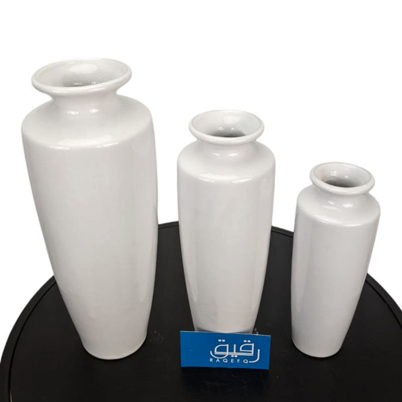 Set of 3 White Ceramic Vases for Table Décor – GD677