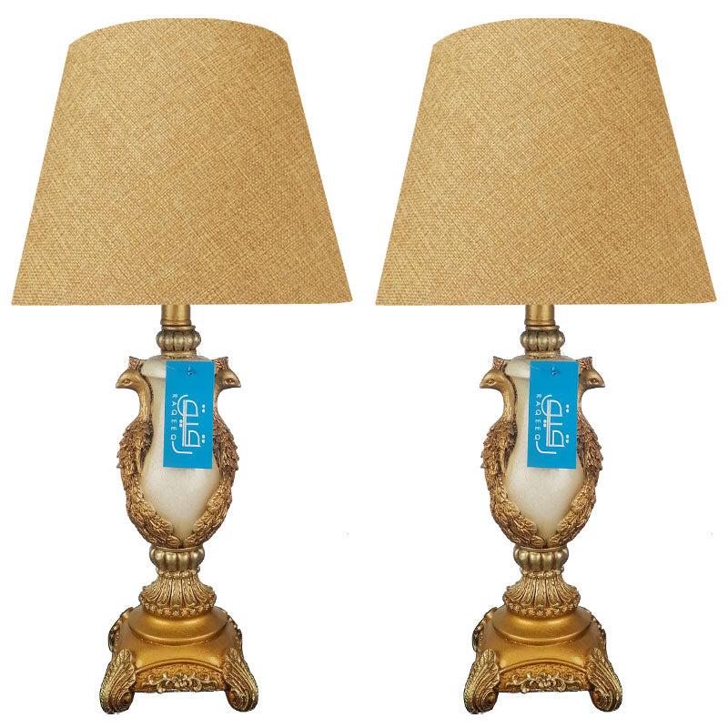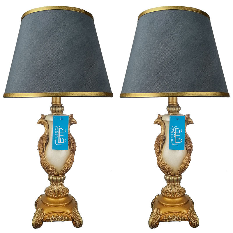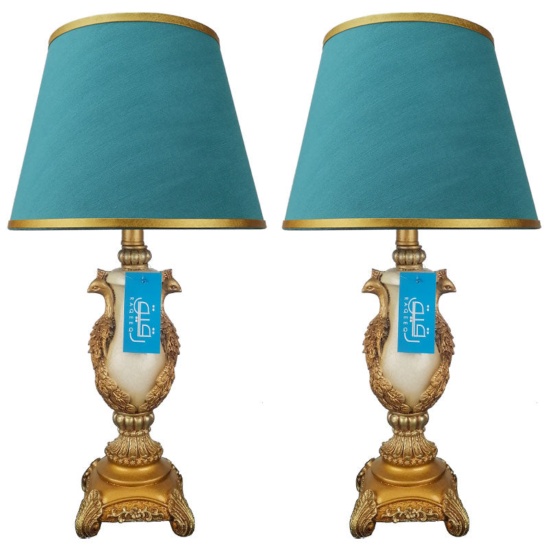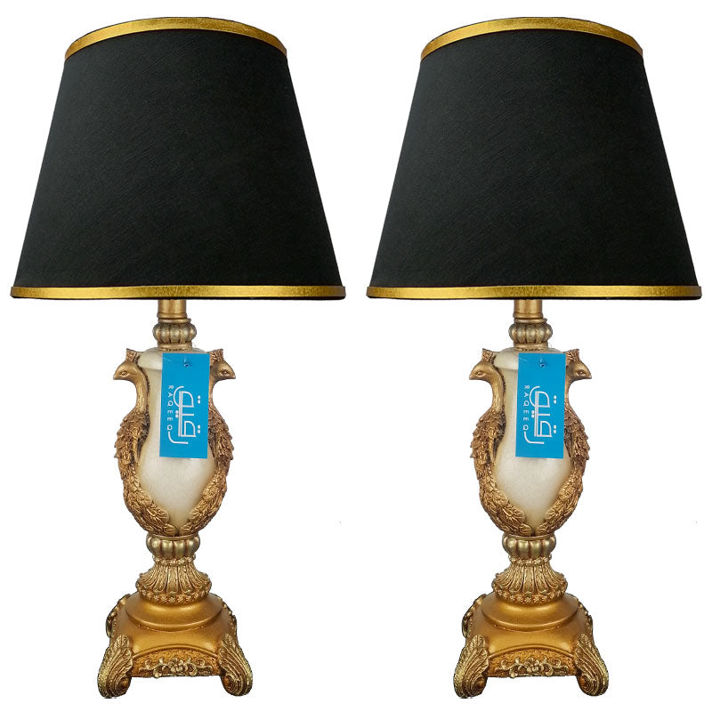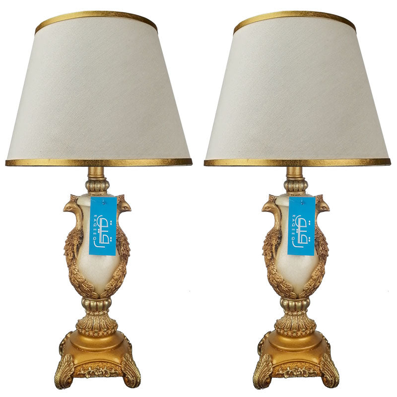 Pair of Antique Golden Peacock Themed Elegant Table Lamps for Bedroom - TL07