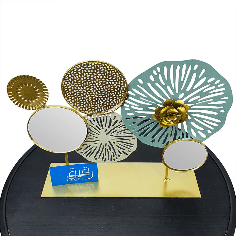 Golden Metal Table Décor with Accent Sunburst & Mirror - Raqeeq GD329